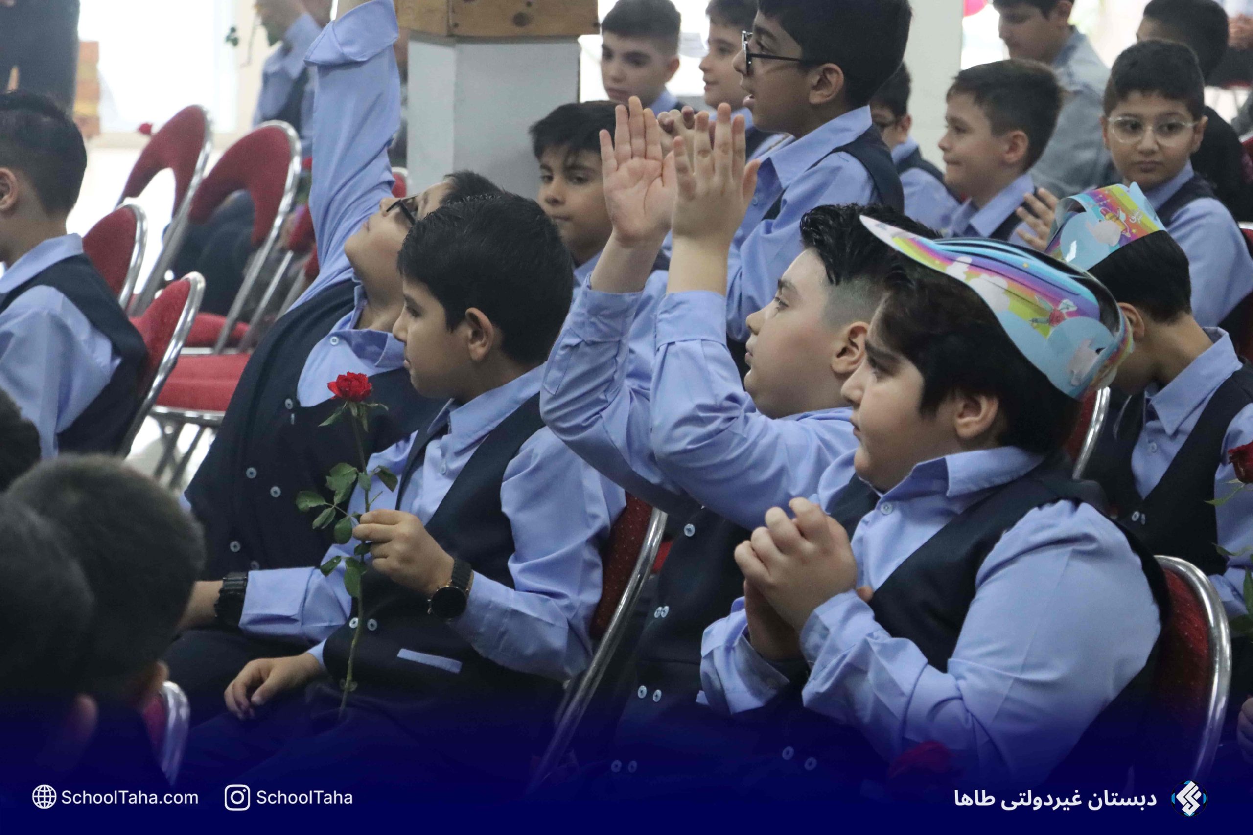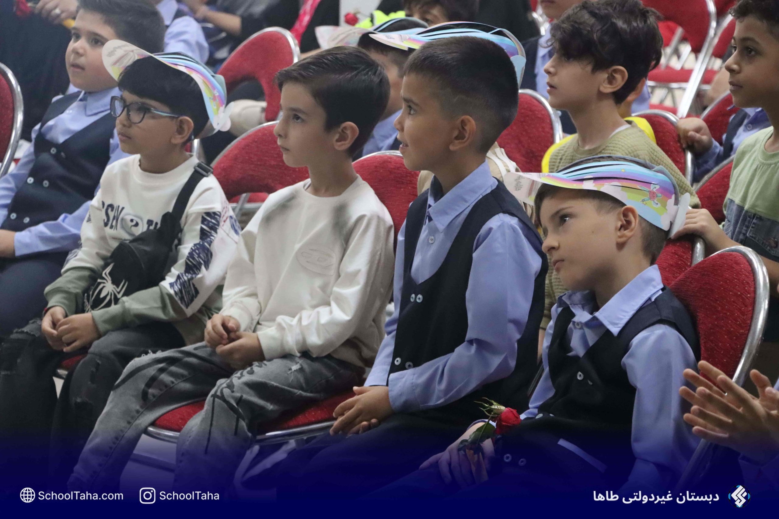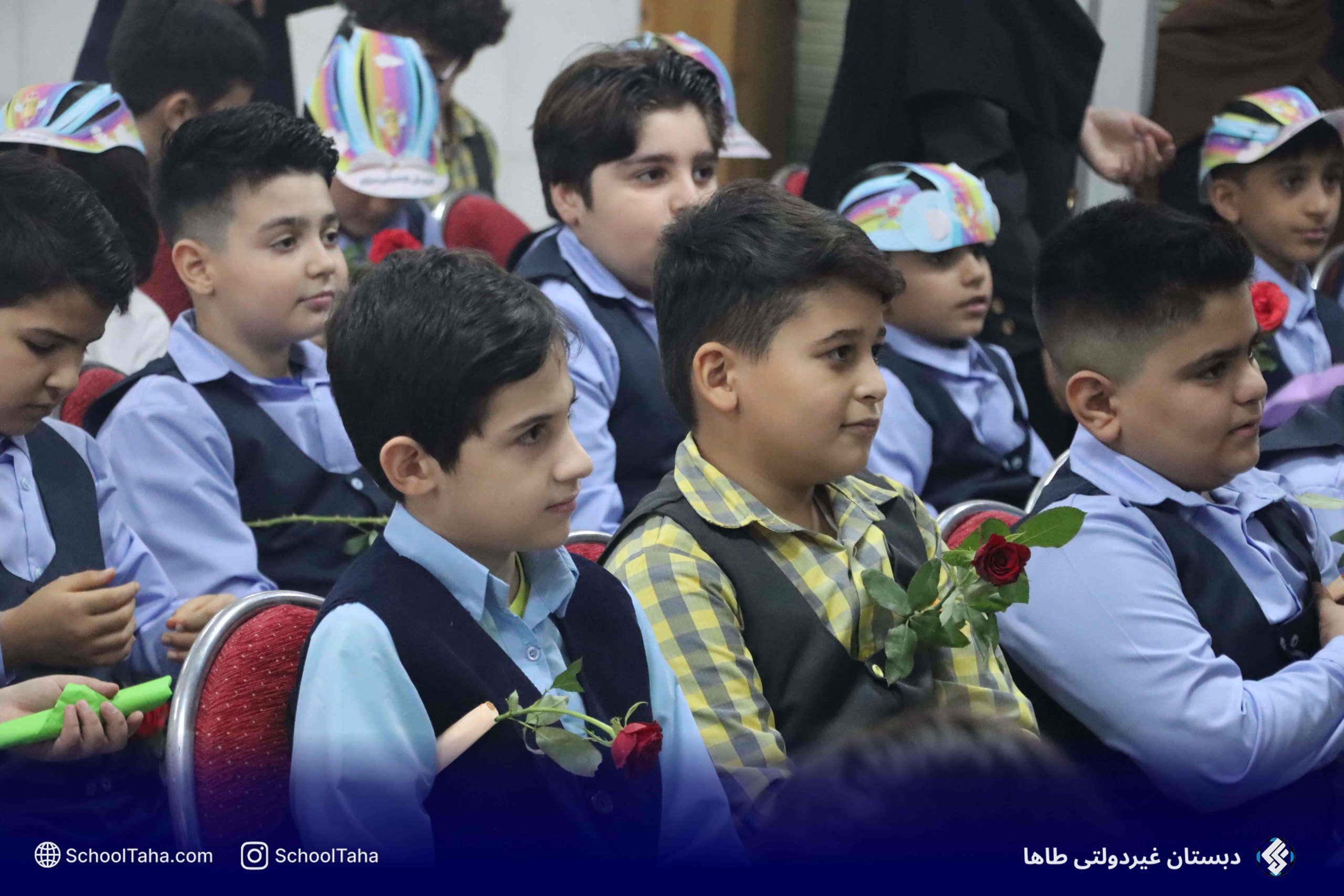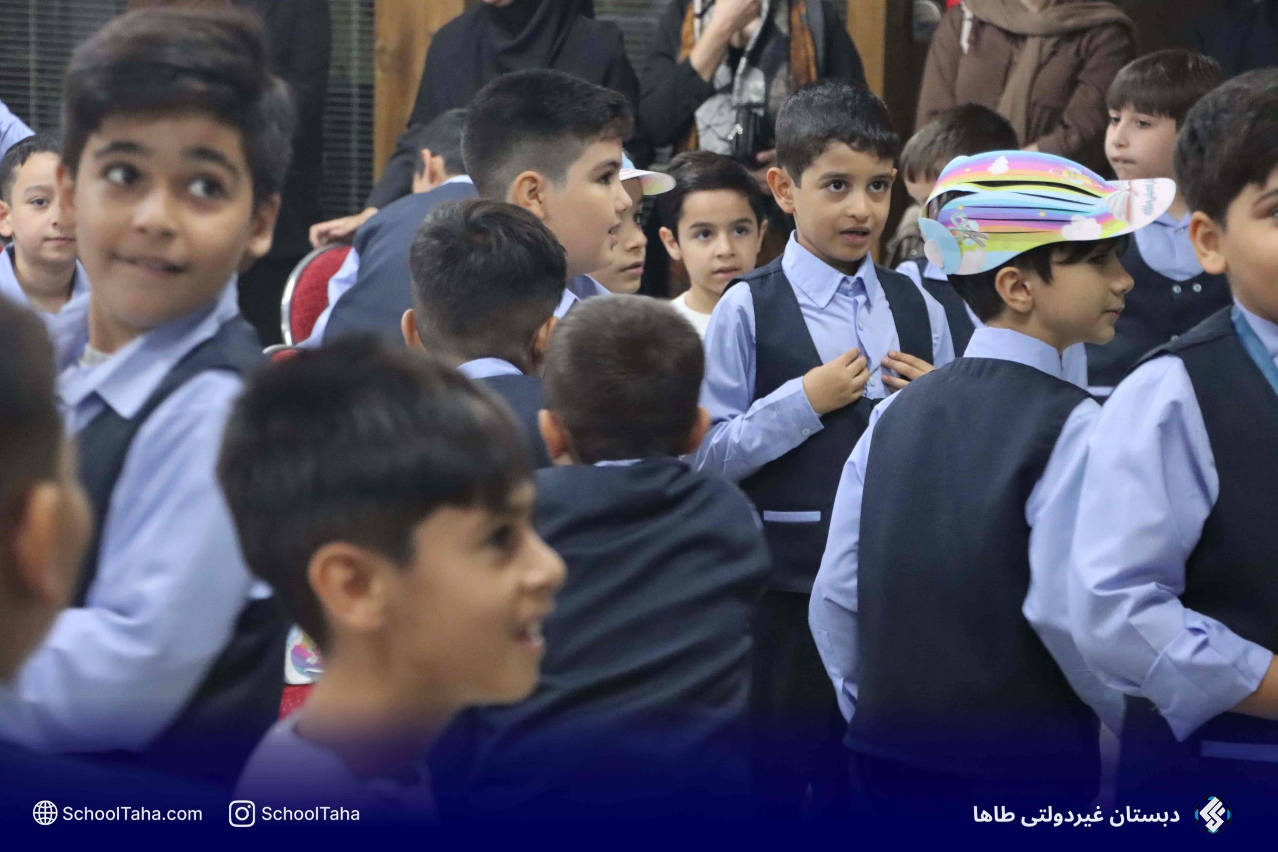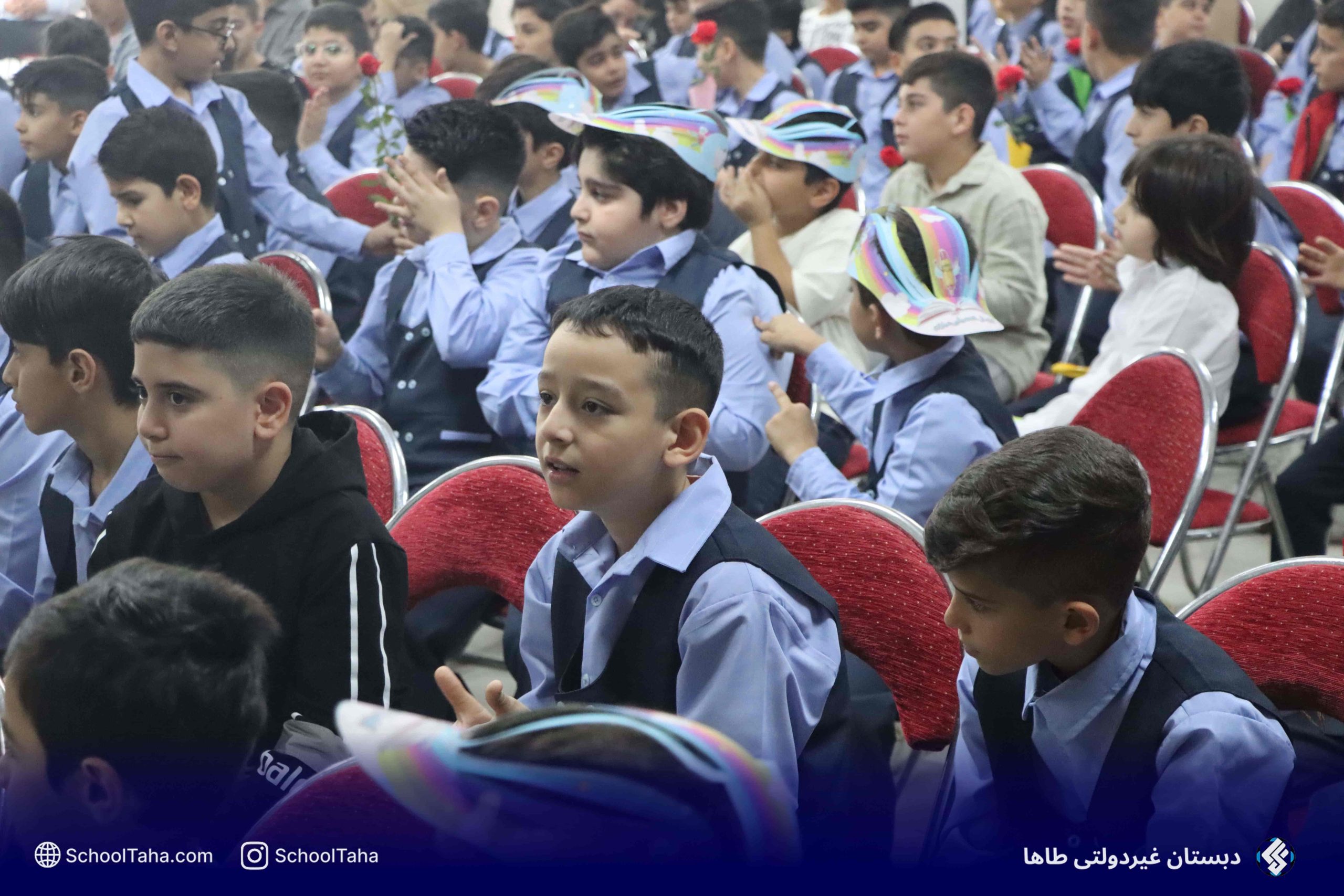 از یک روز قبل، همه‌چیز برای برگزاری جشن آماده بود. صندلی‌ها با نظم خاصی چیده شده بودند، دیوارها با پرچم‌های ایران و روبان‌های رنگی تزئین شده بود و روی میزها شیرینی و گیفت‌های خوشگل اول سال قرار داشت. هر پسر با ورودش یک مداد رنگی هدیه گرفت و با کلاه‌های رنگی مخصوص خودش حسابی ذوق‌زده شد. فضای مدرسه پر از هیجان و لبخند بود.