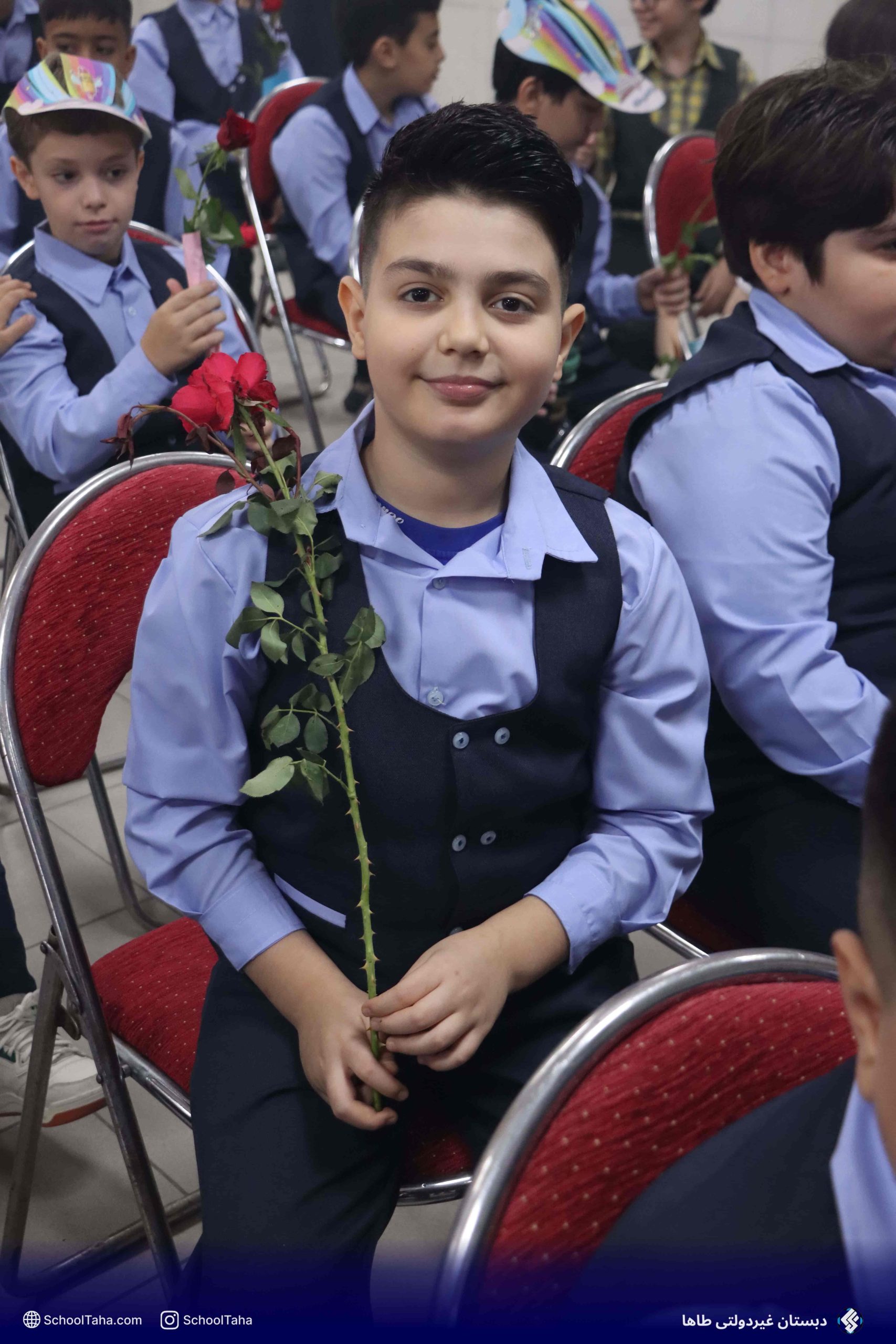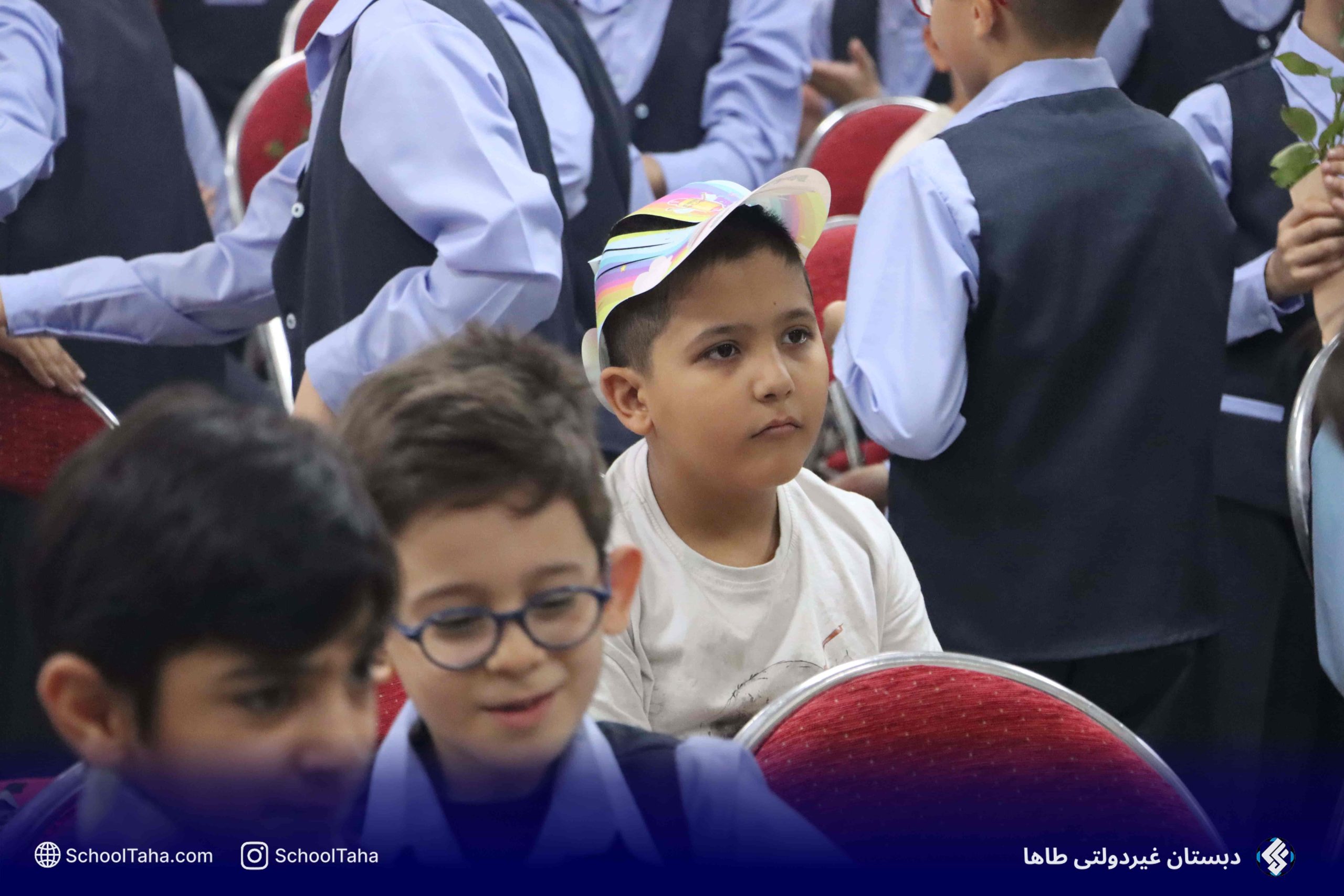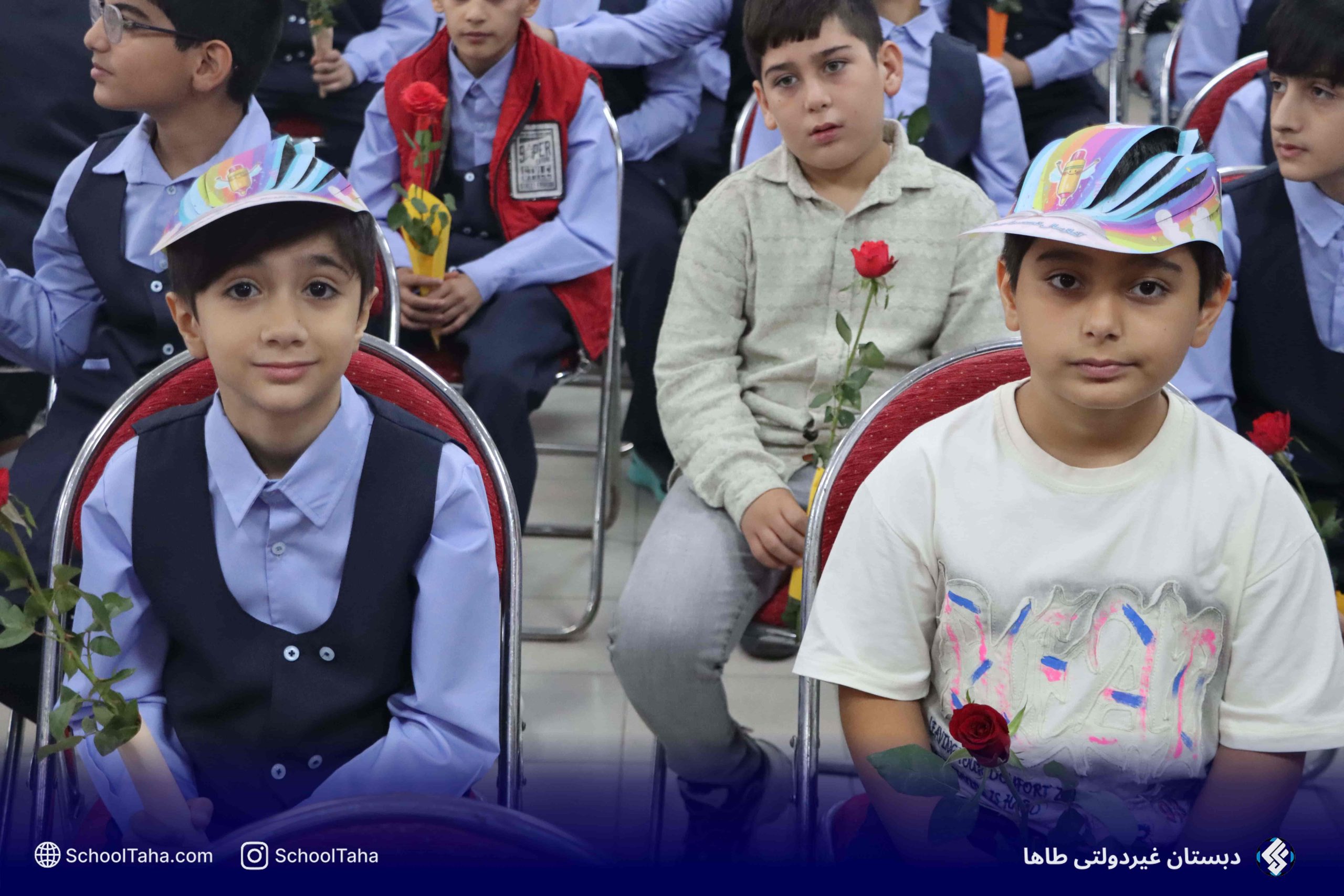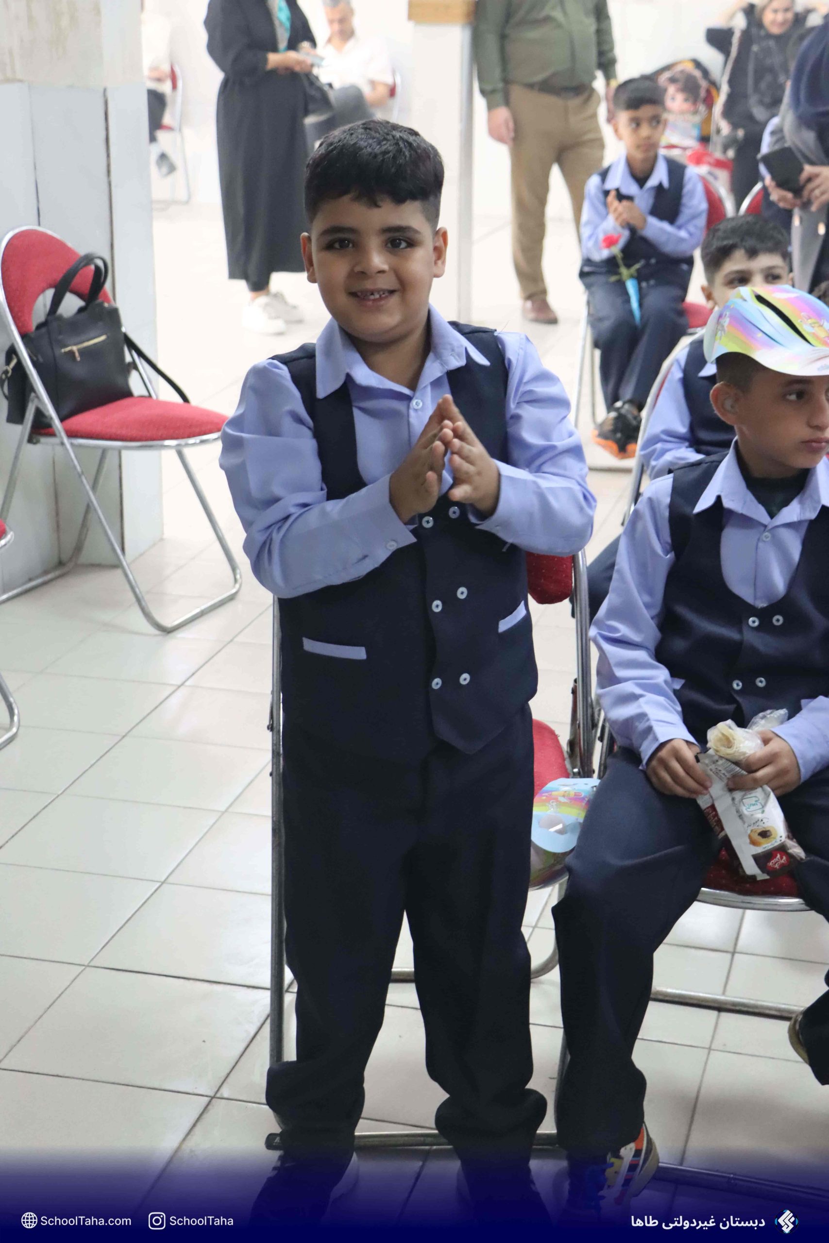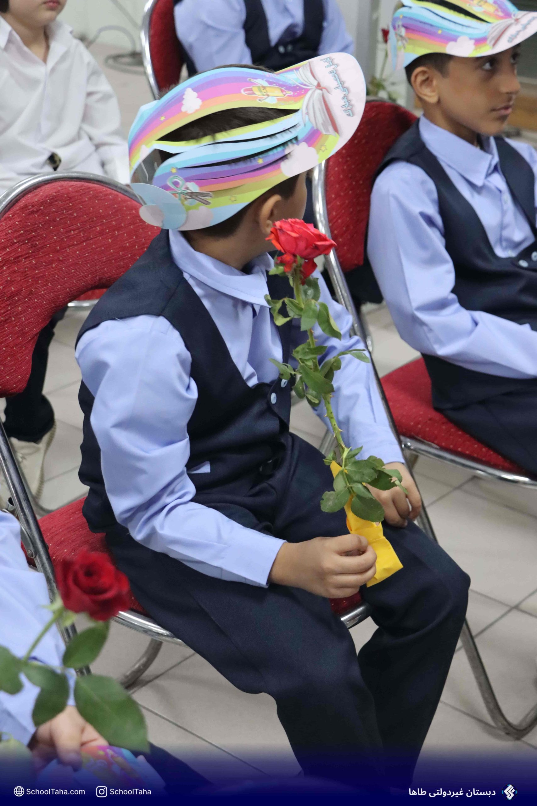 از یک روز قبل، همه‌چیز برای برگزاری جشن آماده بود. صندلی‌ها با نظم خاصی چیده شده بودند، دیوارها با پرچم‌های ایران و روبان‌های رنگی تزئین شده بود و روی میزها شیرینی و گیفت‌های خوشگل اول سال قرار داشت. هر پسر با ورودش یک مداد رنگی هدیه گرفت و با کلاه‌های رنگی مخصوص خودش حسابی ذوق‌زده شد. فضای مدرسه پر از هیجان و لبخند بود.