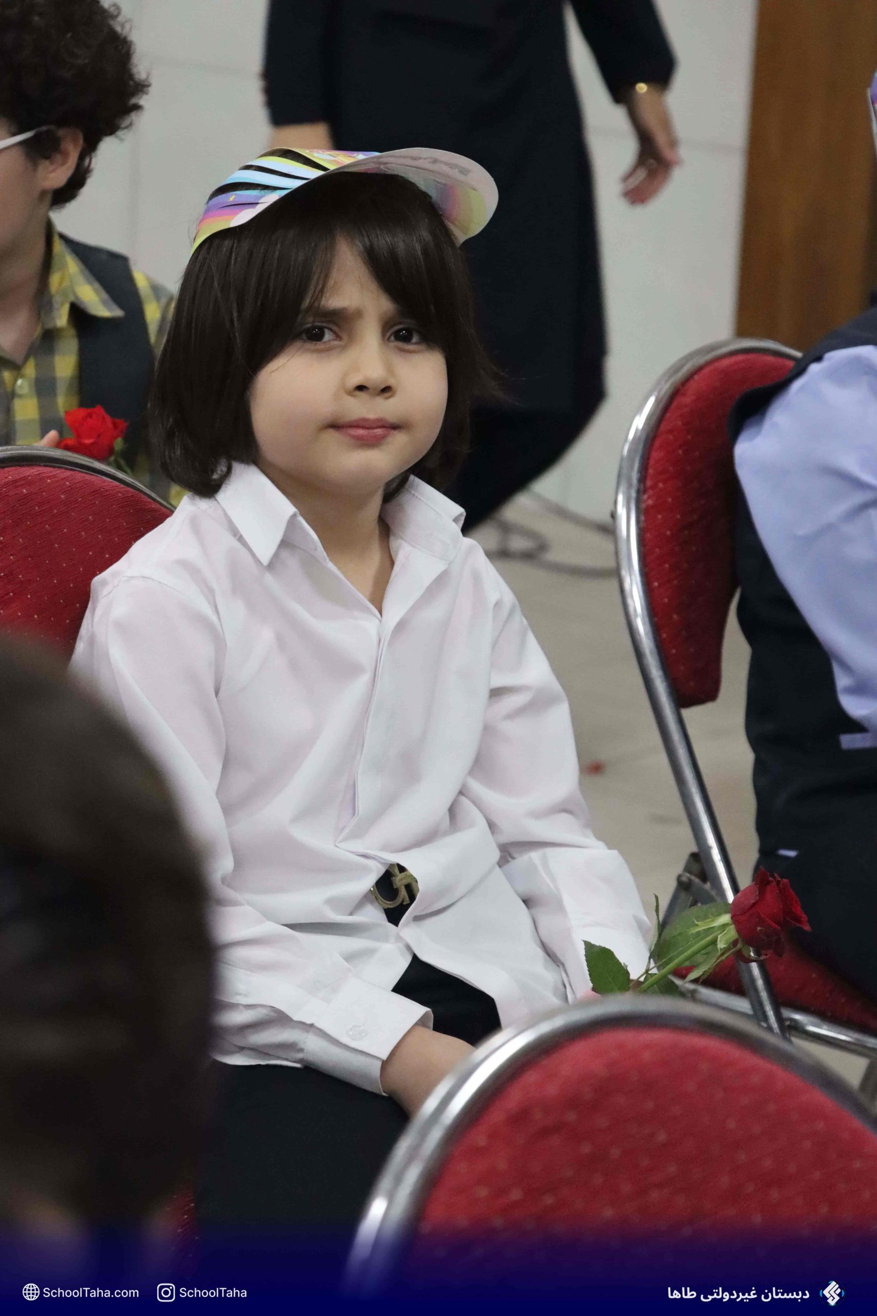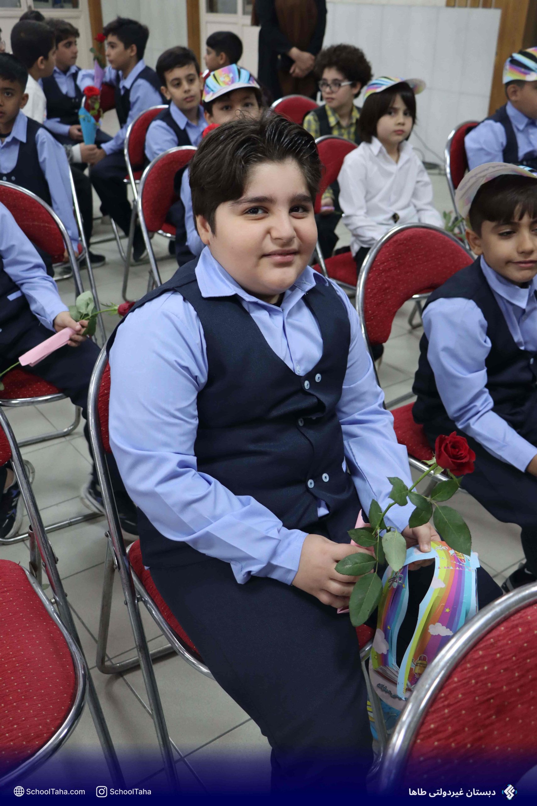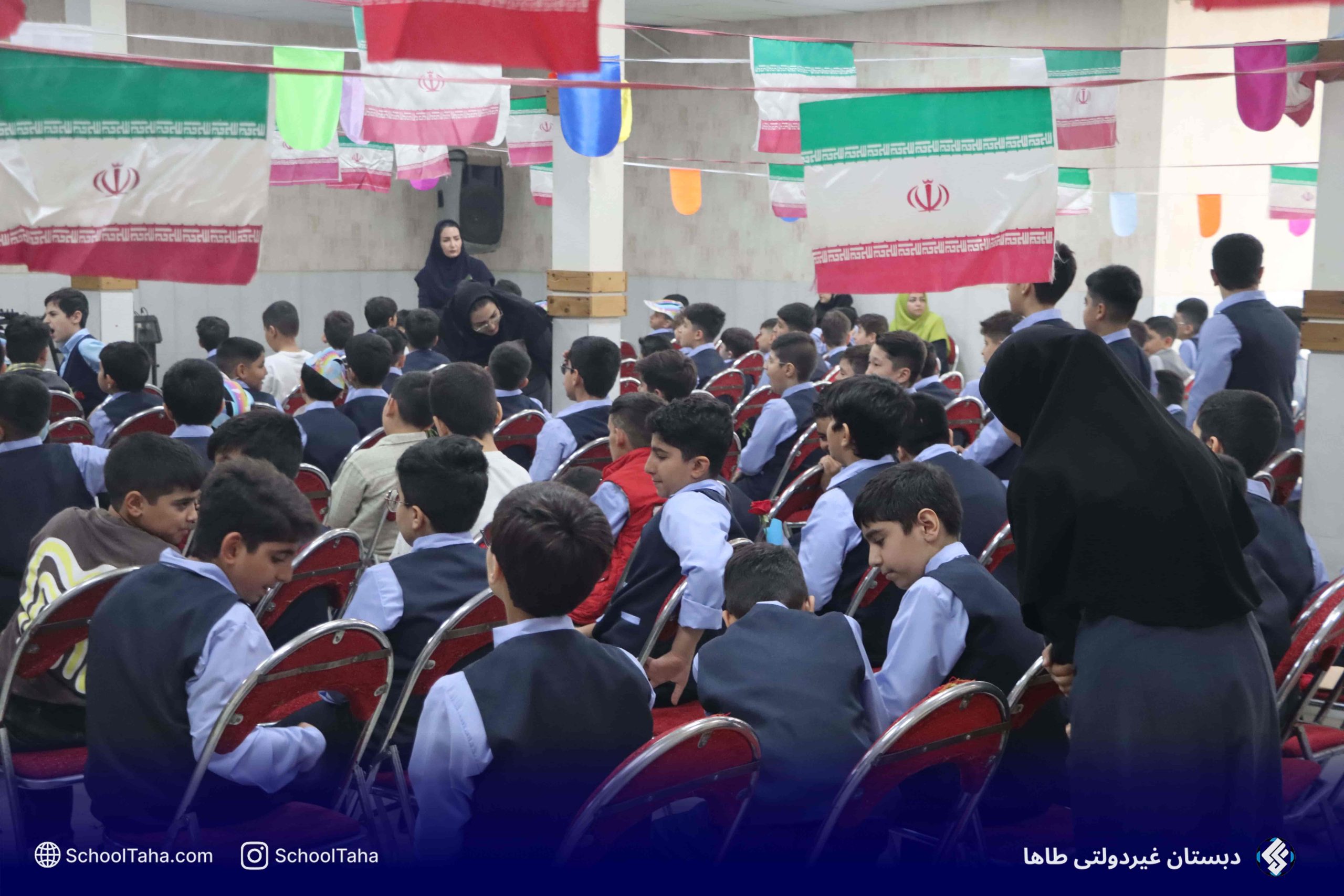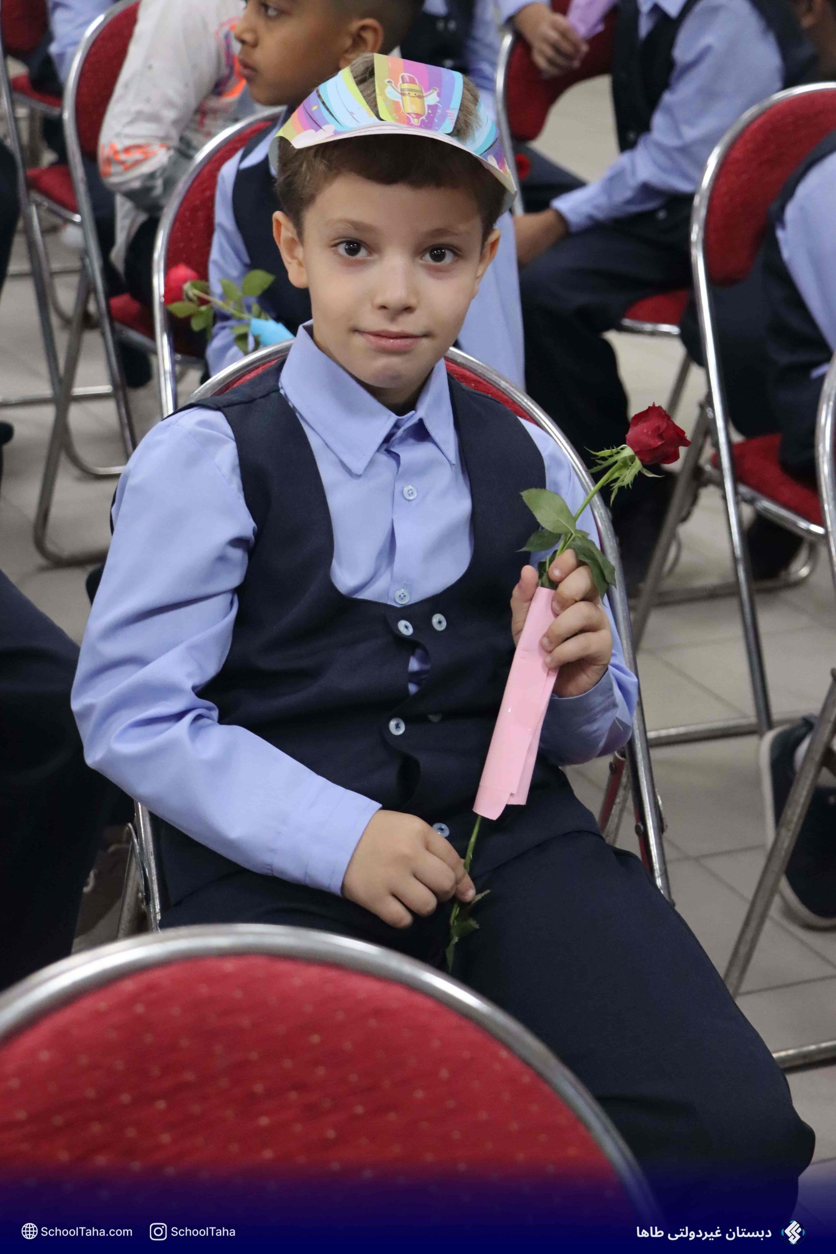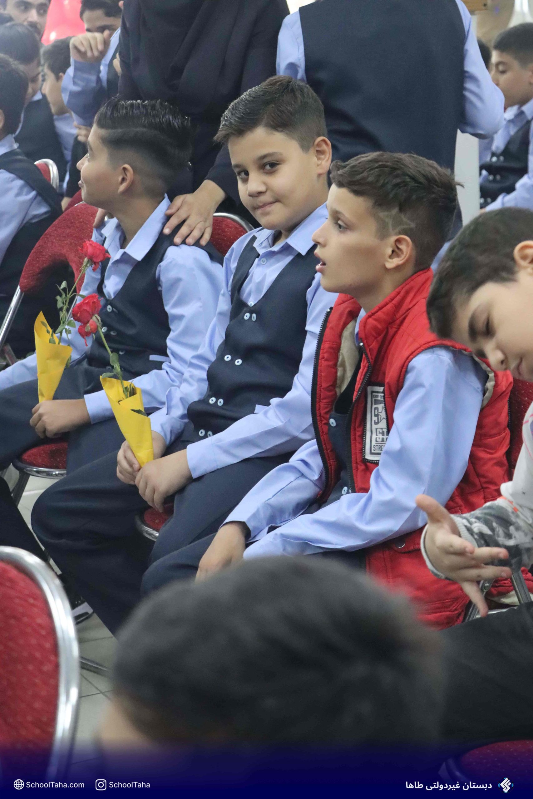 از یک روز قبل، همه‌چیز برای برگزاری جشن آماده بود. صندلی‌ها با نظم خاصی چیده شده بودند، دیوارها با پرچم‌های ایران و روبان‌های رنگی تزئین شده بود و روی میزها شیرینی و گیفت‌های خوشگل اول سال قرار داشت. هر پسر با ورودش یک مداد رنگی هدیه گرفت و با کلاه‌های رنگی مخصوص خودش حسابی ذوق‌زده شد. فضای مدرسه پر از هیجان و لبخند بود.