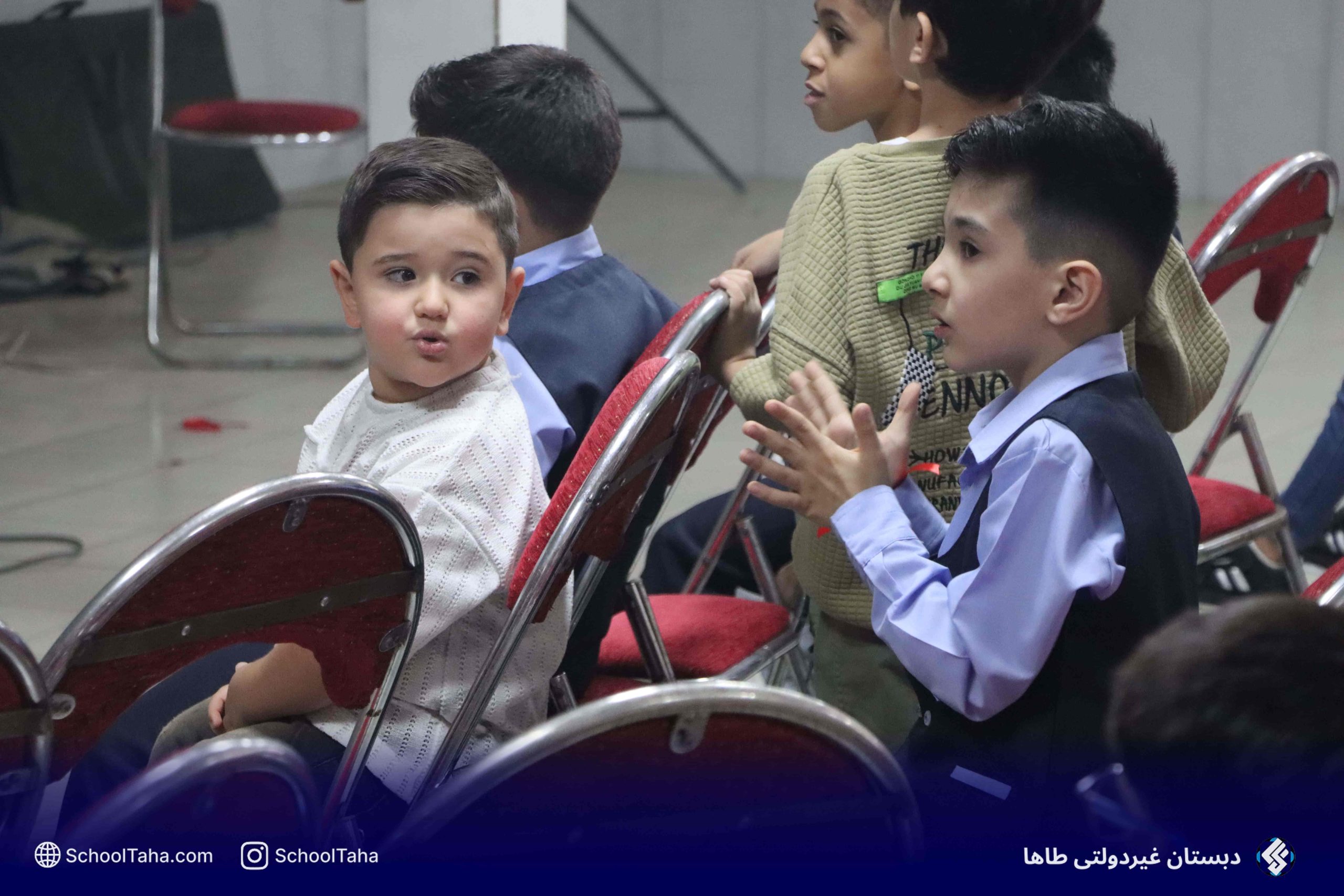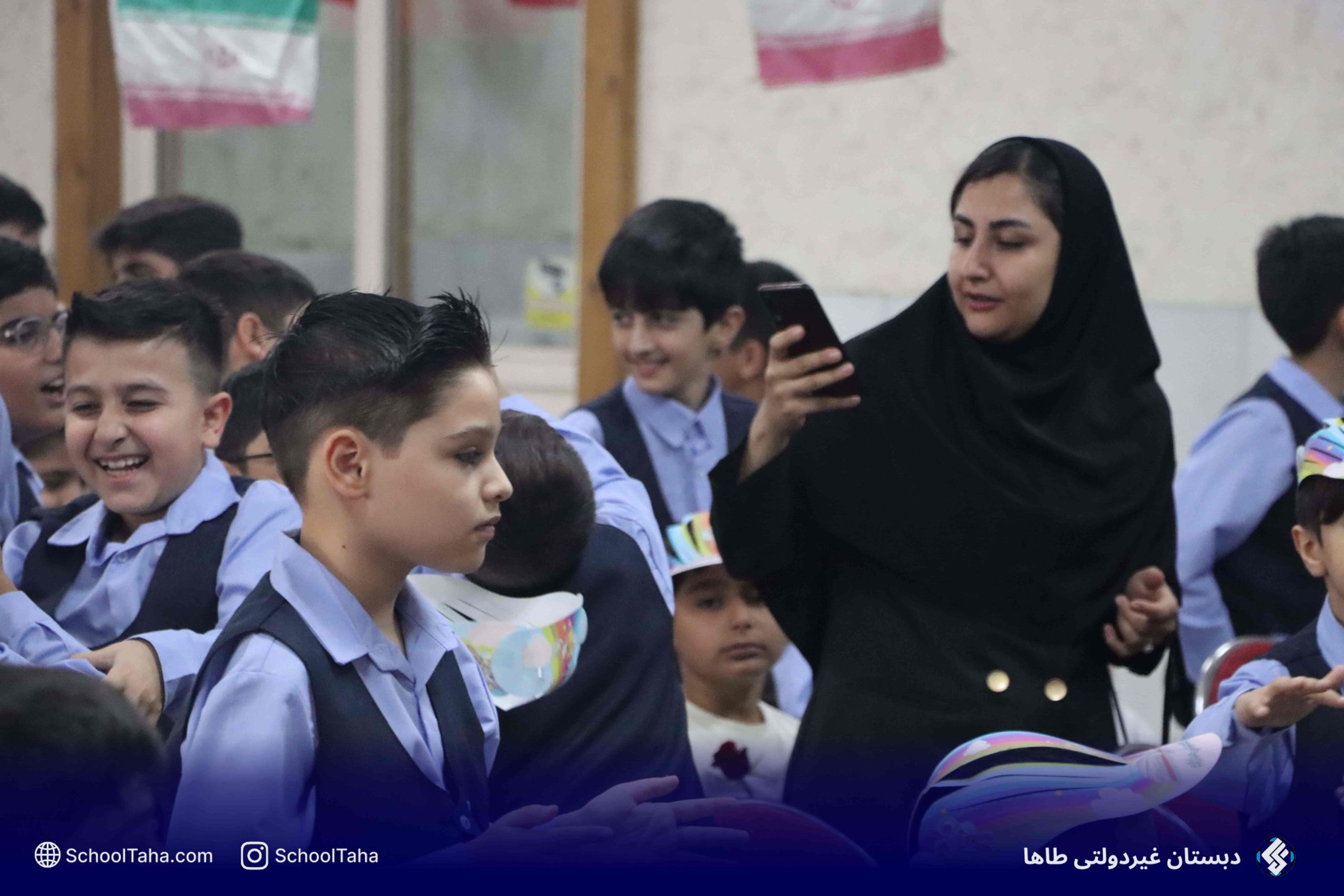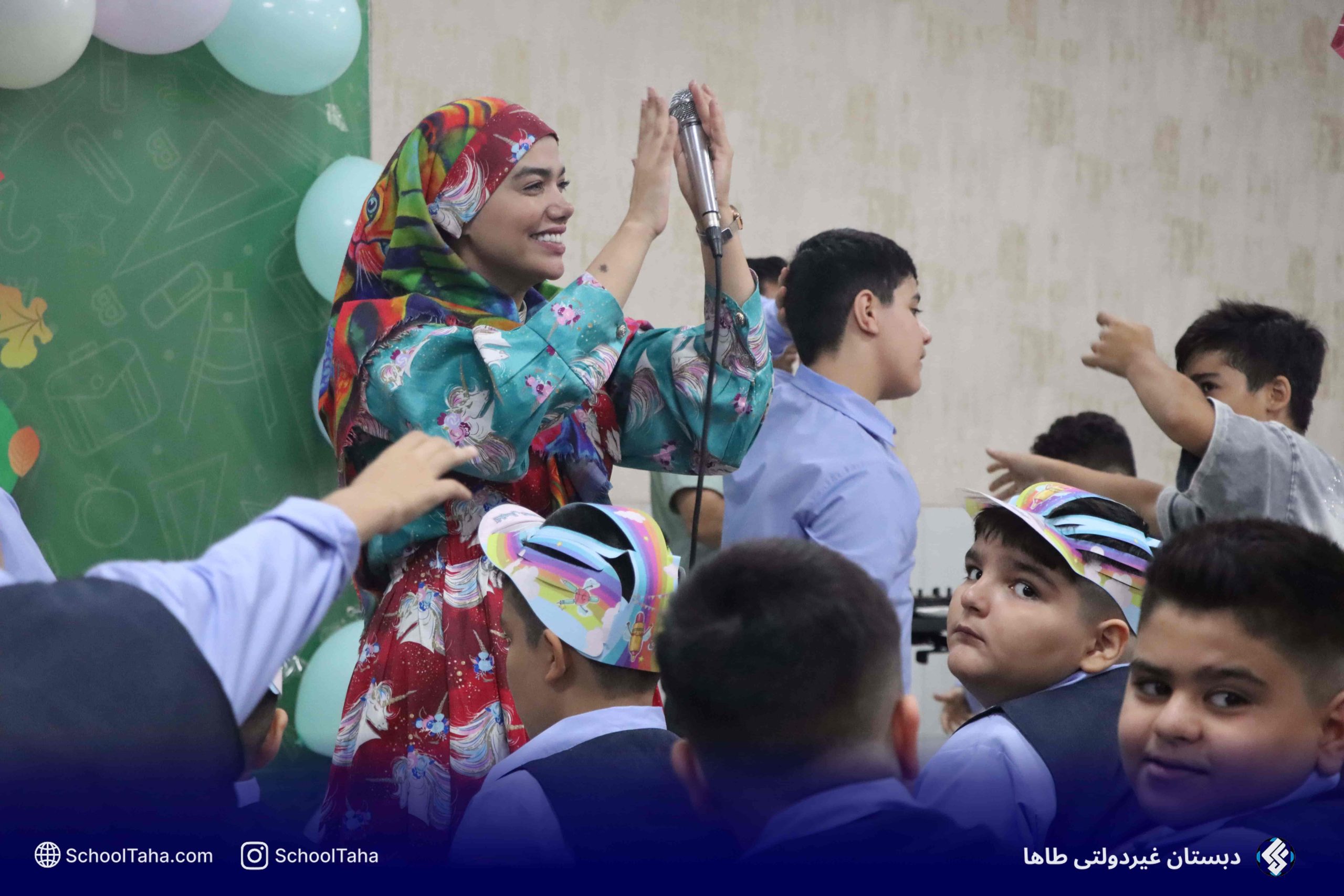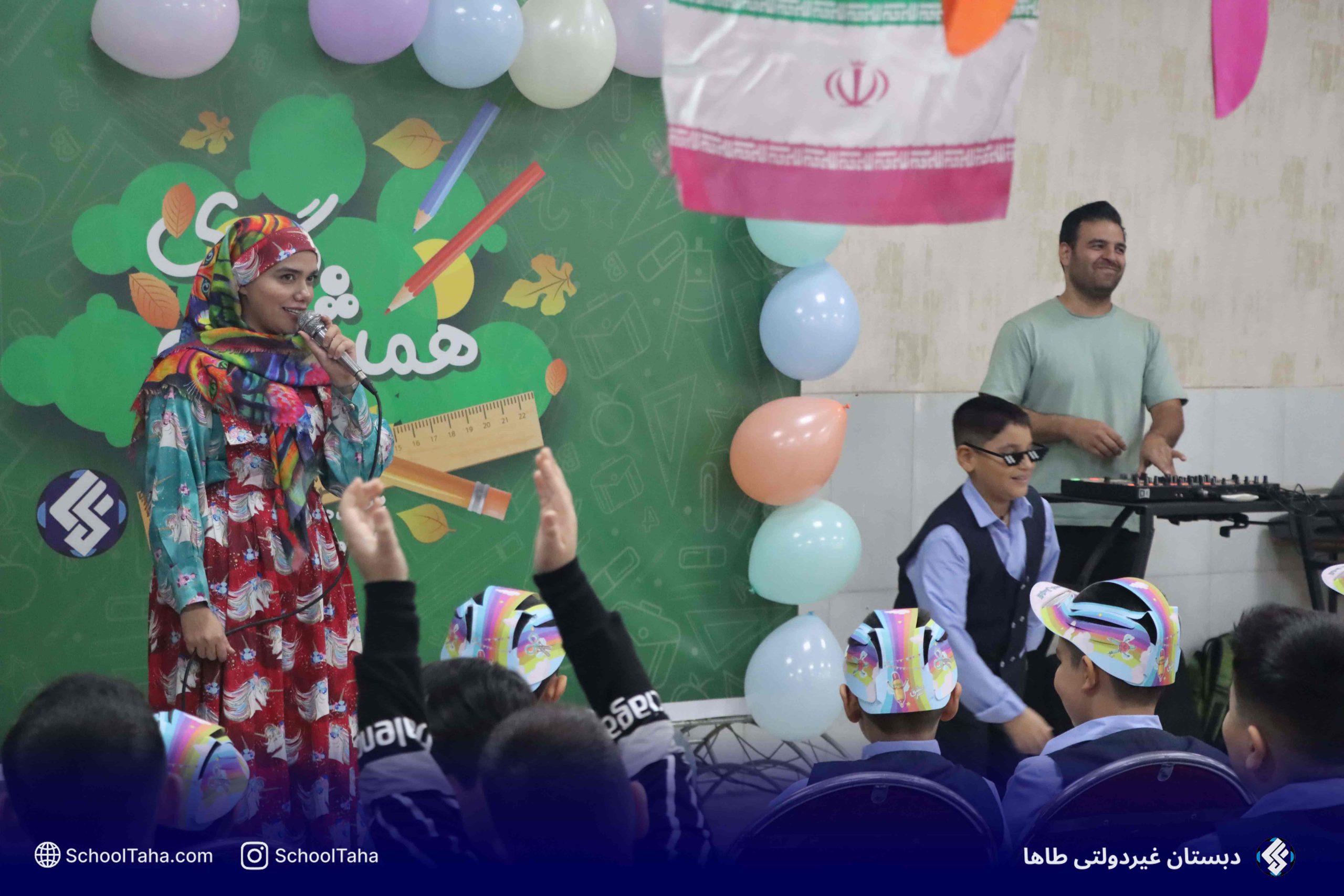در طول جشن مهر 1404، خاله مهربونِ برنامه با شعرهای شاد و آهنگ‌های کودکانه بچه‌ها رو به وجد آورد. صدای خنده‌ها، دست‌زدن‌ها و آواز خوندن‌ها توی تمام فضای مدرسه می‌پیچید. گروه موسیقی هم آهنگ‌های شاد اجرا کرد و پسرای دبستان طاها با حرکات موزون و شادی خودشون حسابی حال‌وهوای جشن رو قشنگ‌تر کردند.