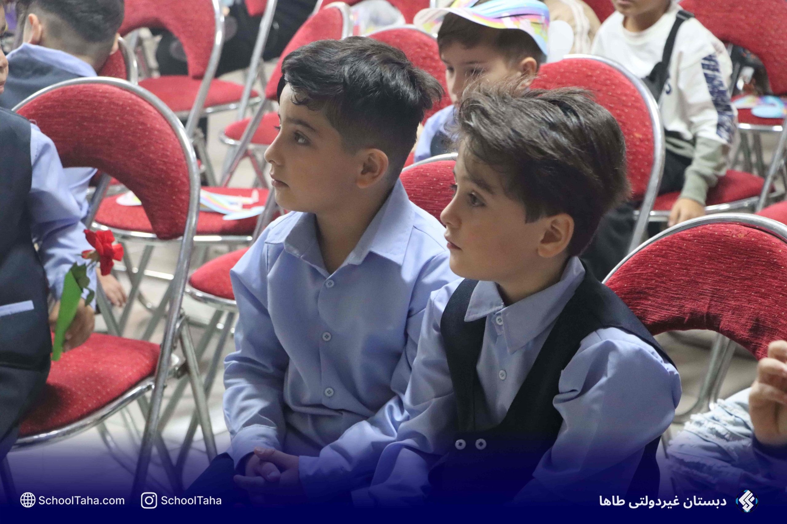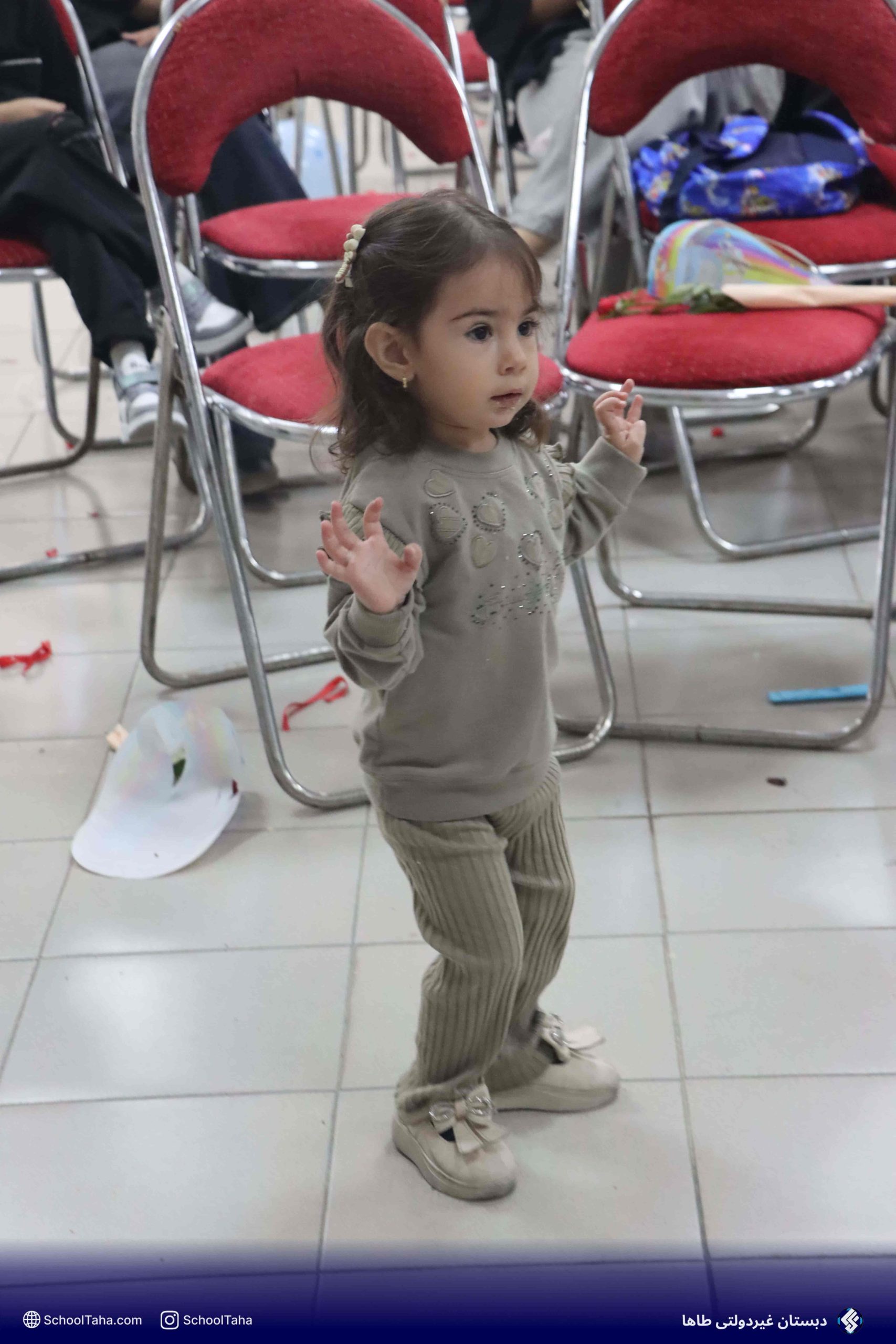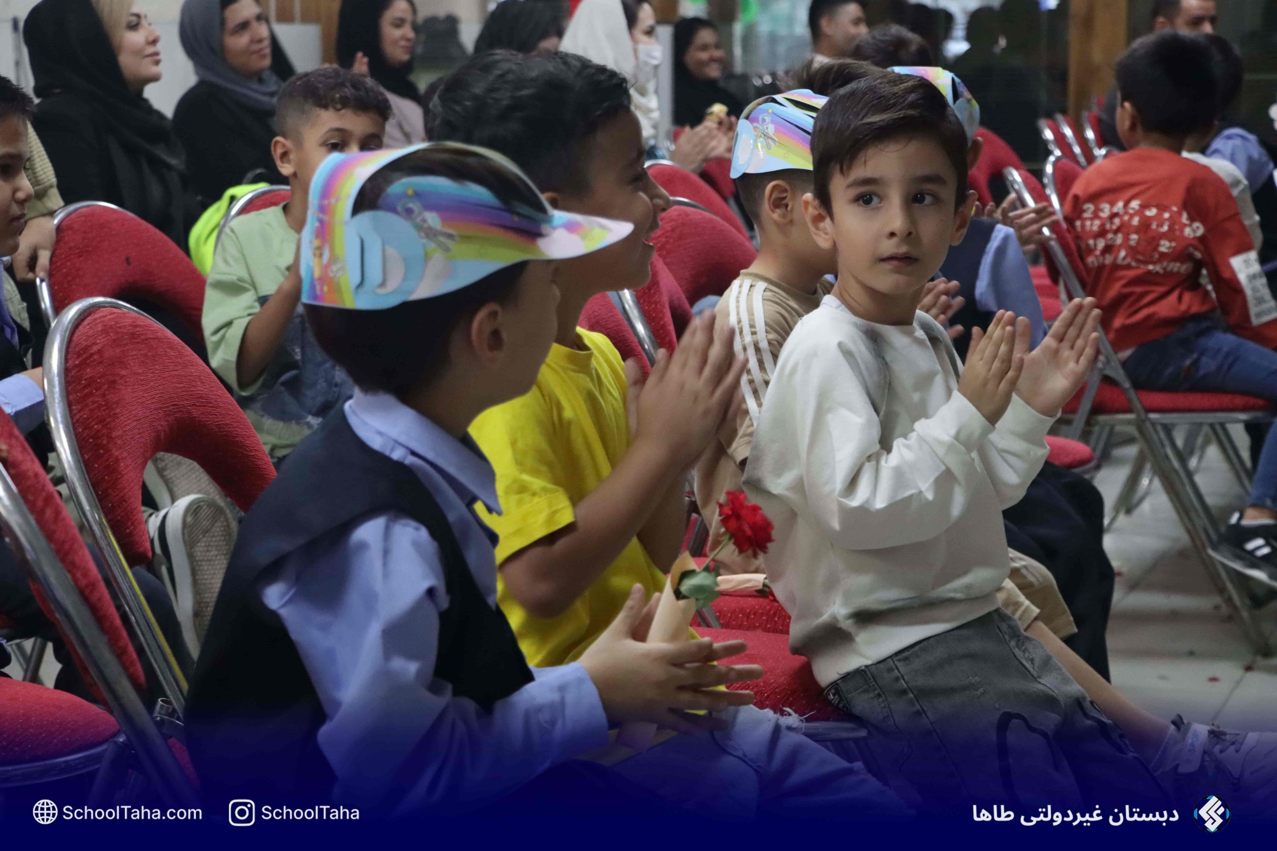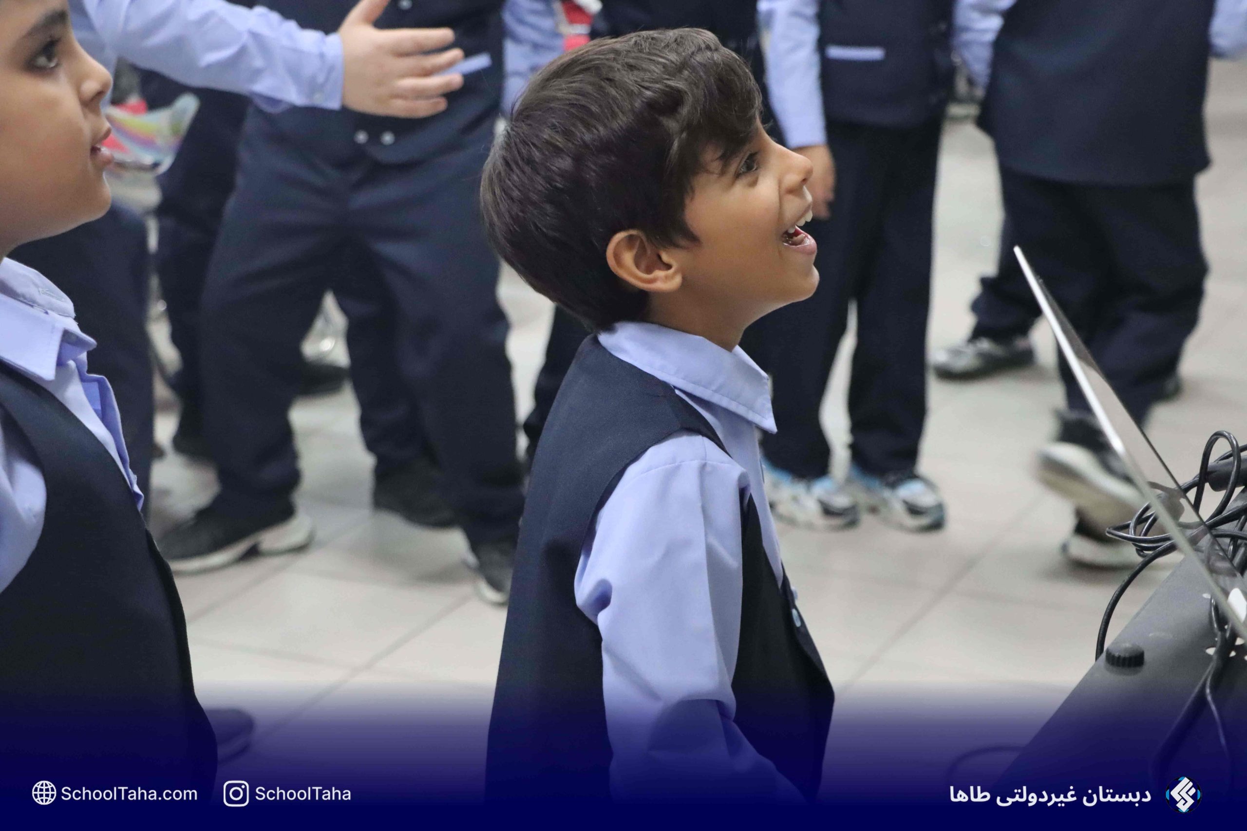 در طول جشن مهر 1404، خاله مهربونِ برنامه با شعرهای شاد و آهنگ‌های کودکانه بچه‌ها رو به وجد آورد. صدای خنده‌ها، دست‌زدن‌ها و آواز خوندن‌ها توی تمام فضای مدرسه می‌پیچید. گروه موسیقی هم آهنگ‌های شاد اجرا کرد و پسرای دبستان طاها با حرکات موزون و شادی خودشون حسابی حال‌وهوای جشن رو قشنگ‌تر کردند.