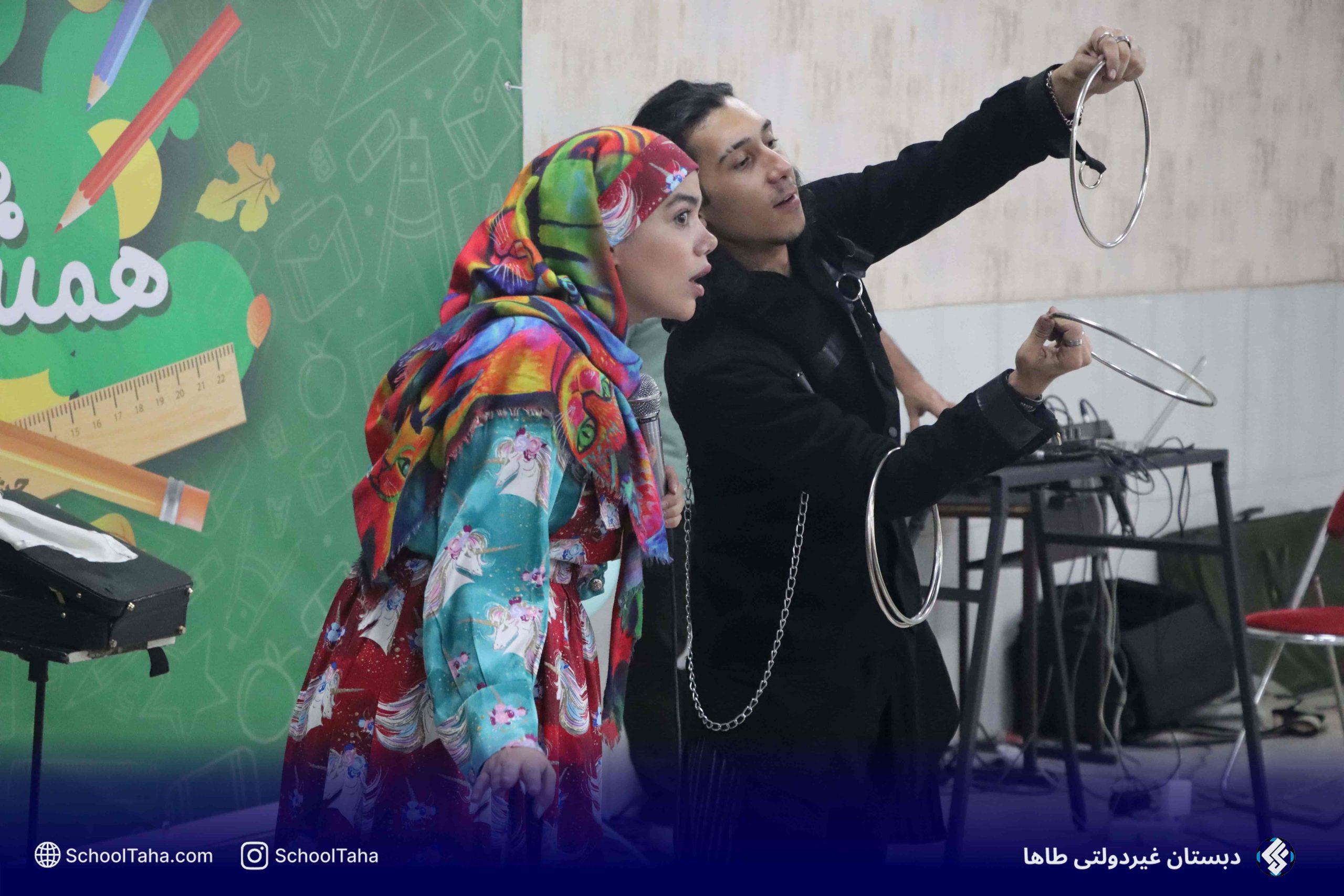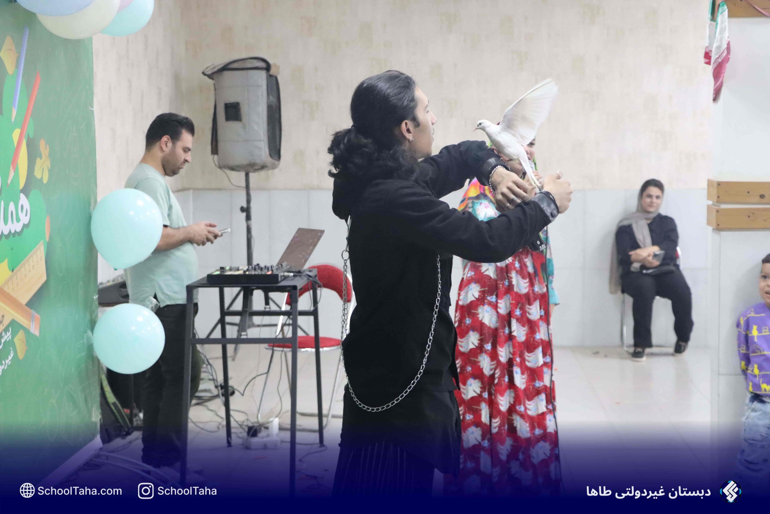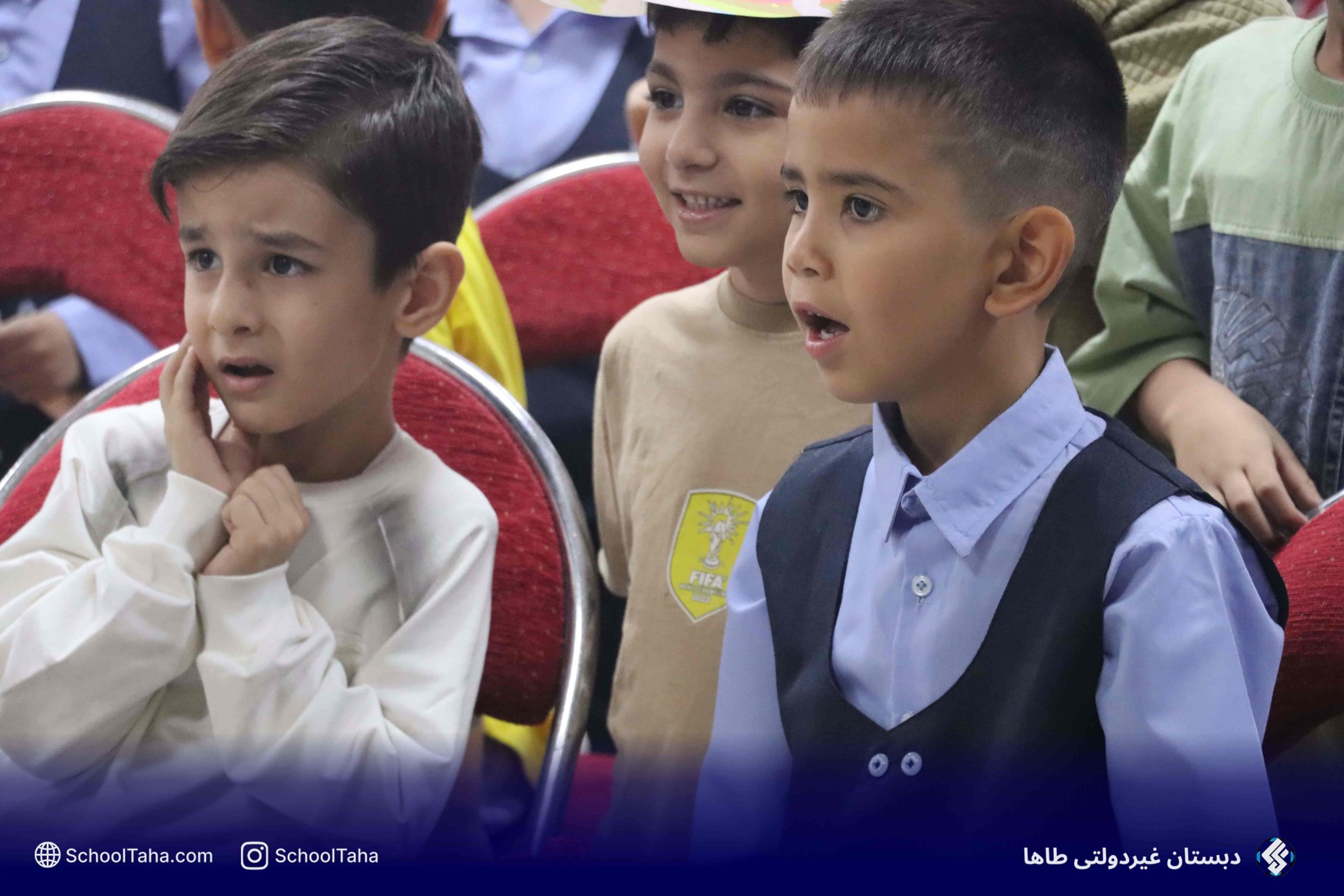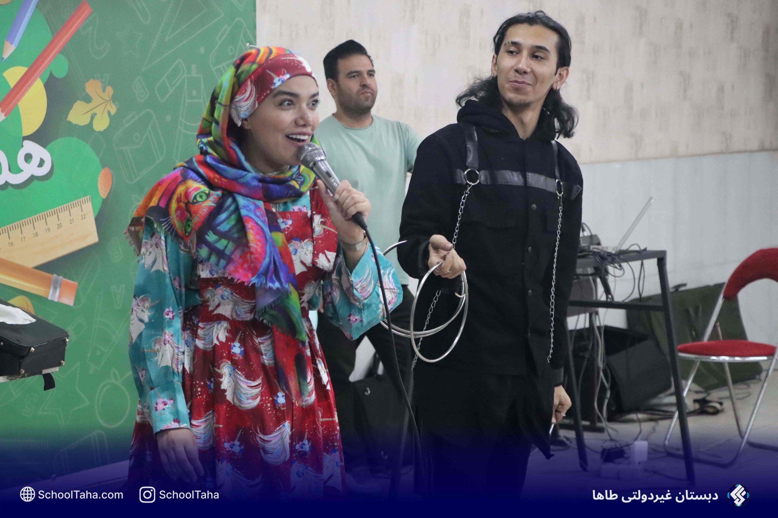 در طول جشن مهر 1404، خاله مهربونِ برنامه با شعرهای شاد و آهنگ‌های کودکانه بچه‌ها رو به وجد آورد. صدای خنده‌ها، دست‌زدن‌ها و آواز خوندن‌ها توی تمام فضای مدرسه می‌پیچید. گروه موسیقی هم آهنگ‌های شاد اجرا کرد و پسرای دبستان طاها با حرکات موزون و شادی خودشون حسابی حال‌وهوای جشن رو قشنگ‌تر کردند.